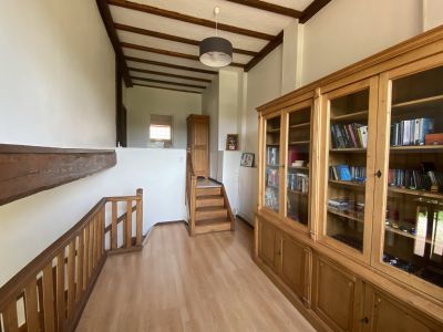 Vous y découvrirez, au rez-de-chaussée, un salon, une cuisine séparée et équipée avec un espace repas et cheminée, une salle à manger, un bureau, une salle de bain avec double vasque et baignoire ainsi qu’un WC séparé. A l’étage, 3 chambres, salle de bain avec doubles vasques et baignoire également, ainsi qu’une mezzanine, séparant les deux niveaux.