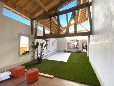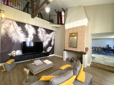 MAISON DU XVI, ayant bénéficié d'une rénovation lourde et totale. Deux terrasses-patio totalisant 132 m2 dont une équipée d'une piscine chauffée. Vue dégagée sur les collines. Maison de 390M2 dont 250 m2 habitables actuellement et 140 m2 pouvant avoir plusieurs destinations : aujourd’hui salle de jeux et garage. Mais demain grand logement de plain pied de 120 m2, salle de réception, commerce ?