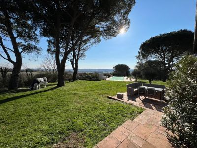 On the first floor, a library, a playroom and a bedroom of more than 26 m2 are also waiting for your family. A 1,2 HA land, south facing and with a 180 degree view, offers a superb infinity pool, a jacuzzi, a tennis court and a sauna, all without any opposite.