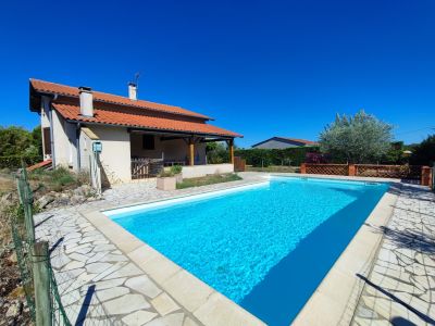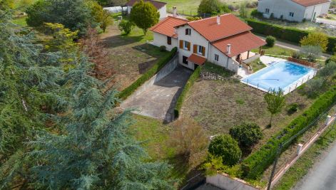 Grande maison familiale d'environ 122 m², sur un terrain de 6200 m². Elle possède une belle piscine de 10x4.5 m traitement au sel. Une grande terrasse couverte de 35 m² et sa cuisine d'été complète ce côté. Sur le terrain, deux dépendances de stockage dont une d'environ 120 m² pouvant être transformée en seconde maison.